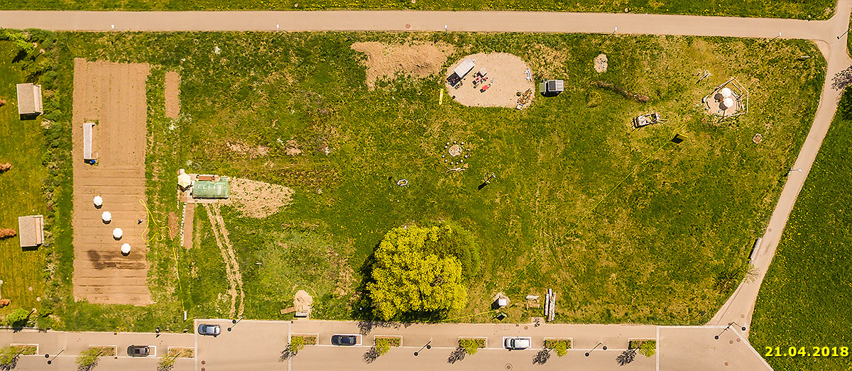 Seit Beginn dokumentiert und begleitet der Fotograf Adrian von Muralt die Entstehung der Färberwiese mit Kamera und Fotodrohne.
