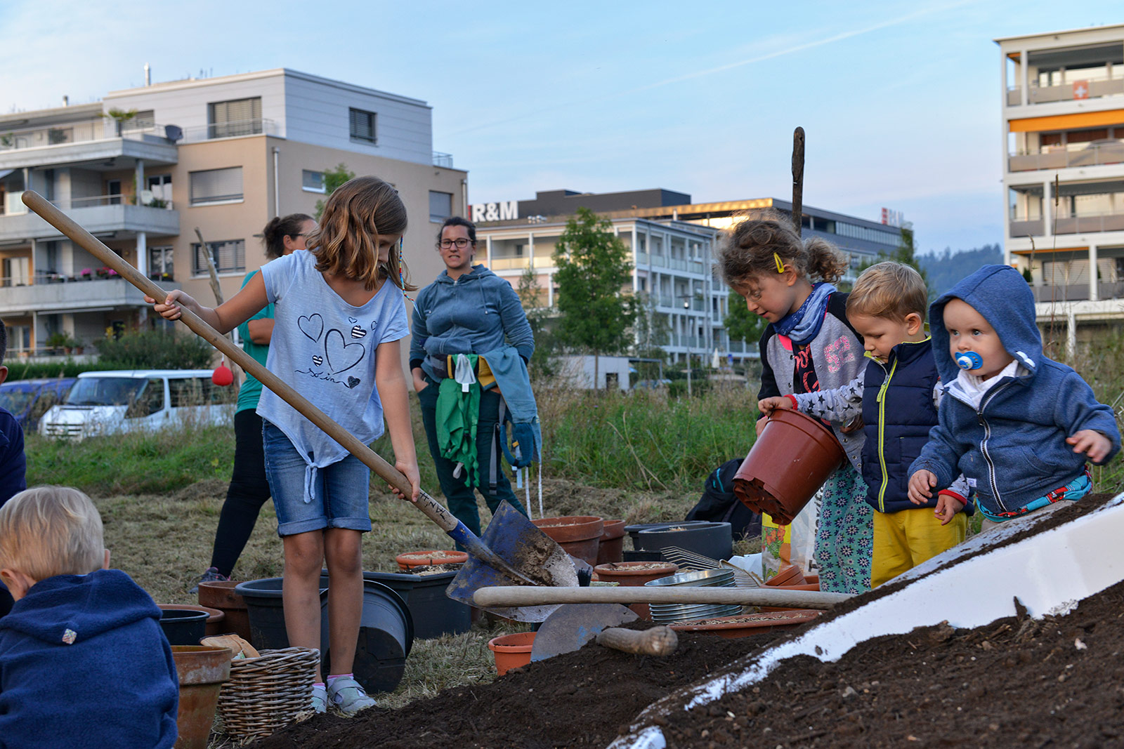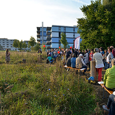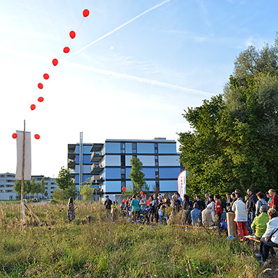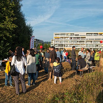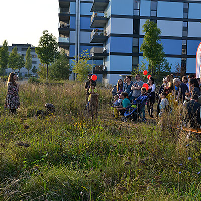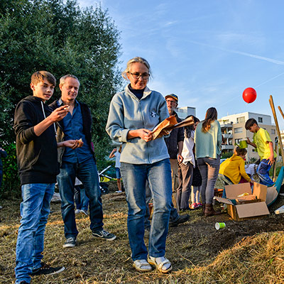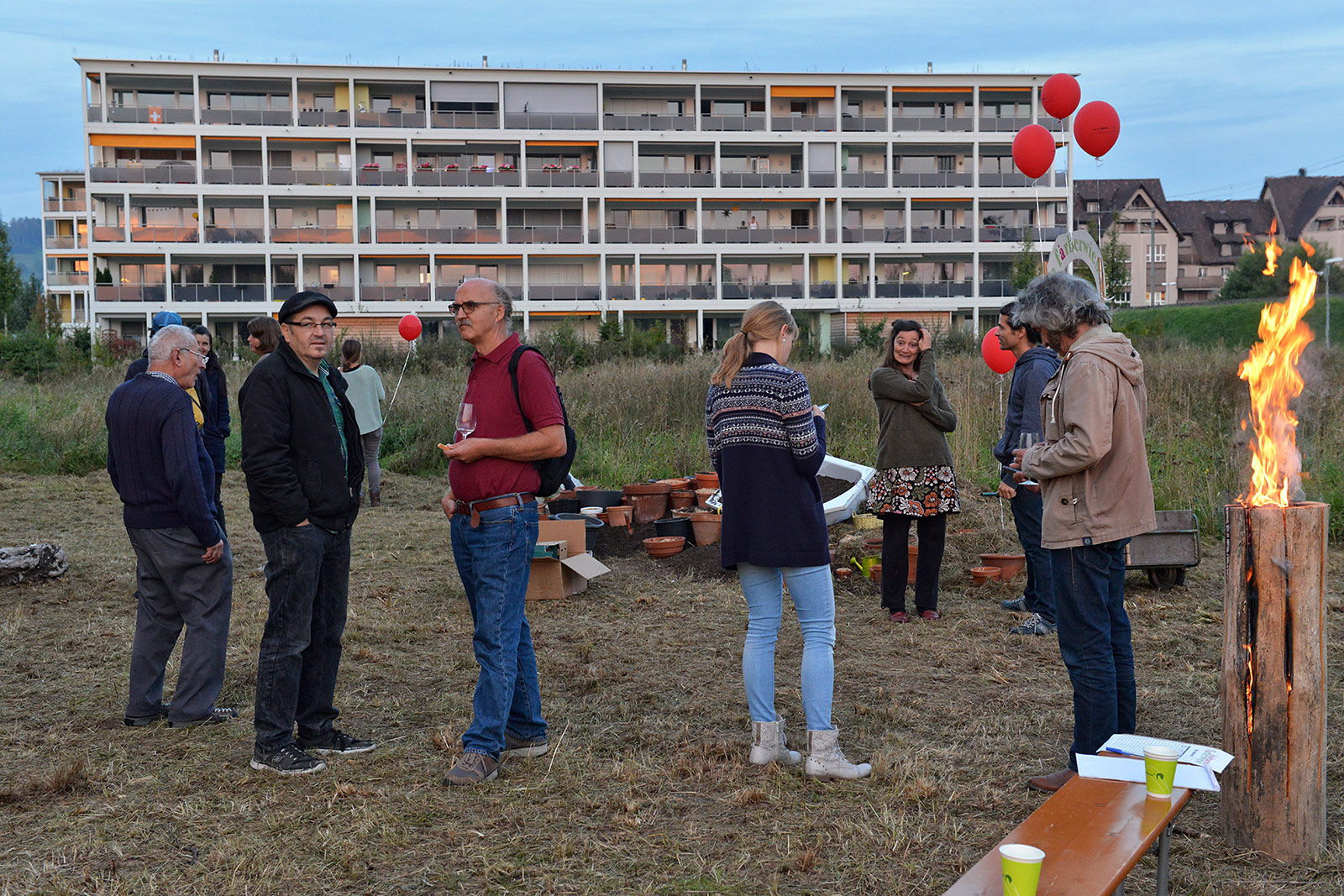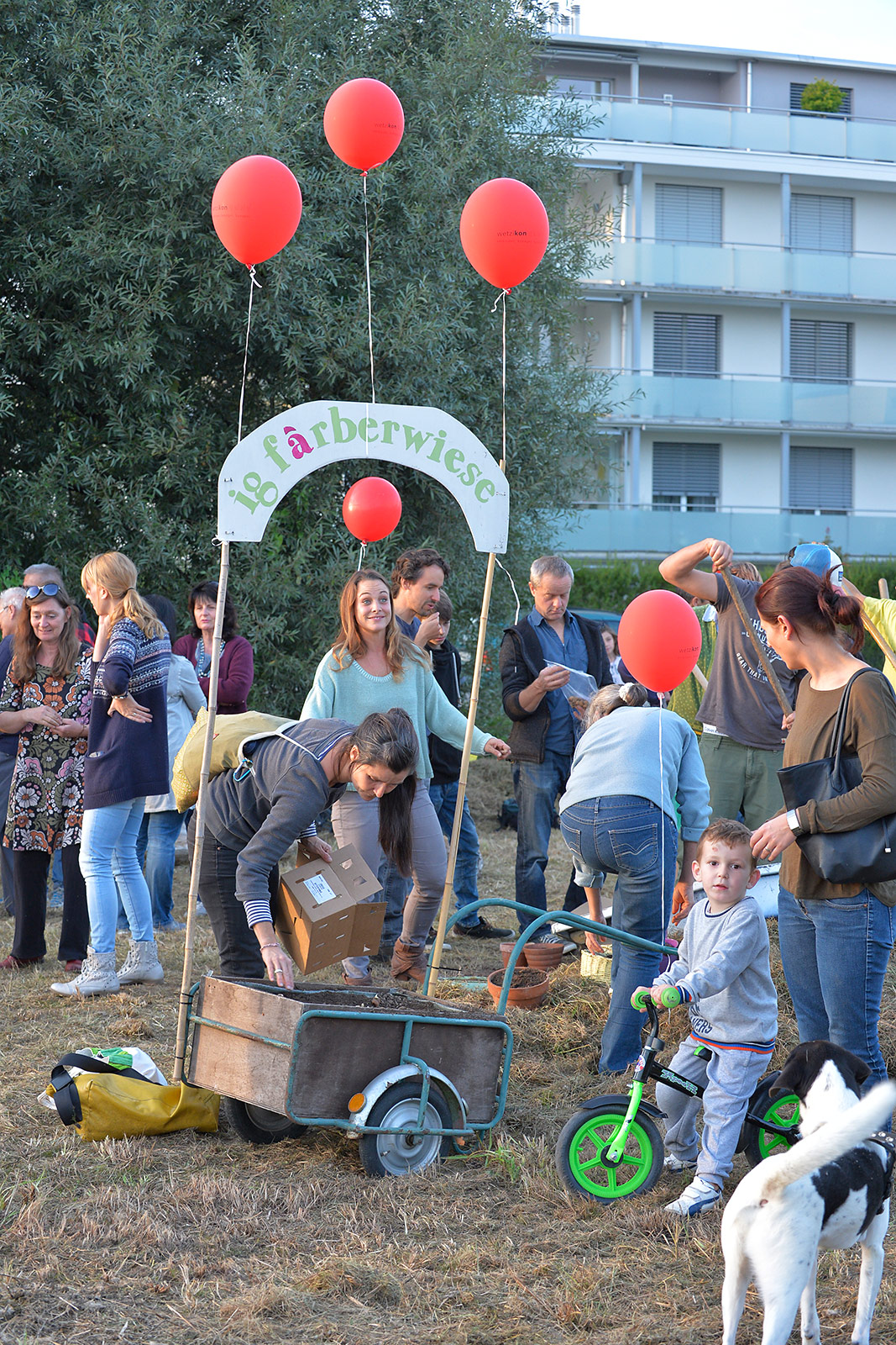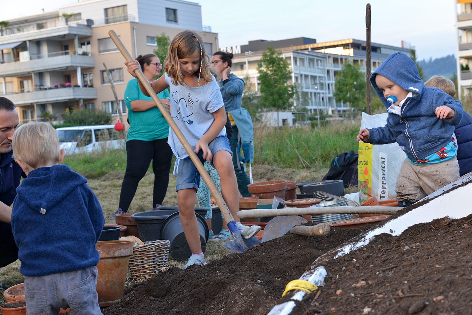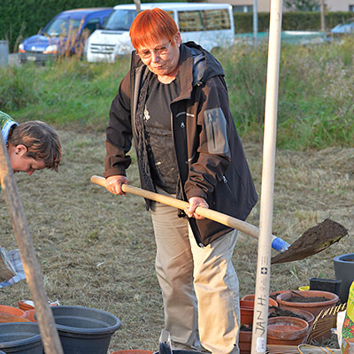 Eine bunte Gruppe von Anwohnern jeglichen Alters traf sich zum vergnügten Blumenzwiebeln pflanzen und einem Apéro. Der erste Schritt ist getan, auf das der Garten gedeihe!