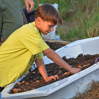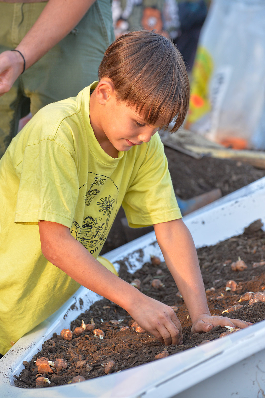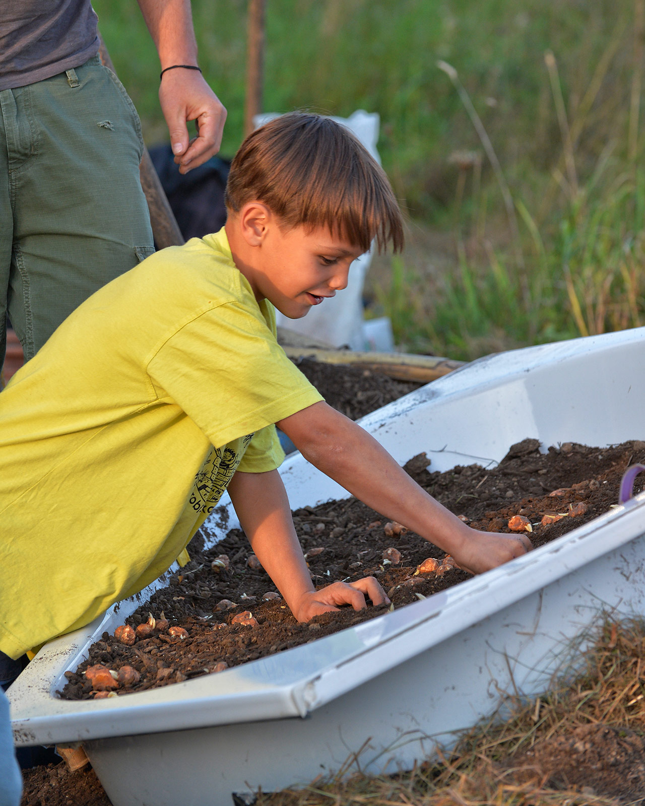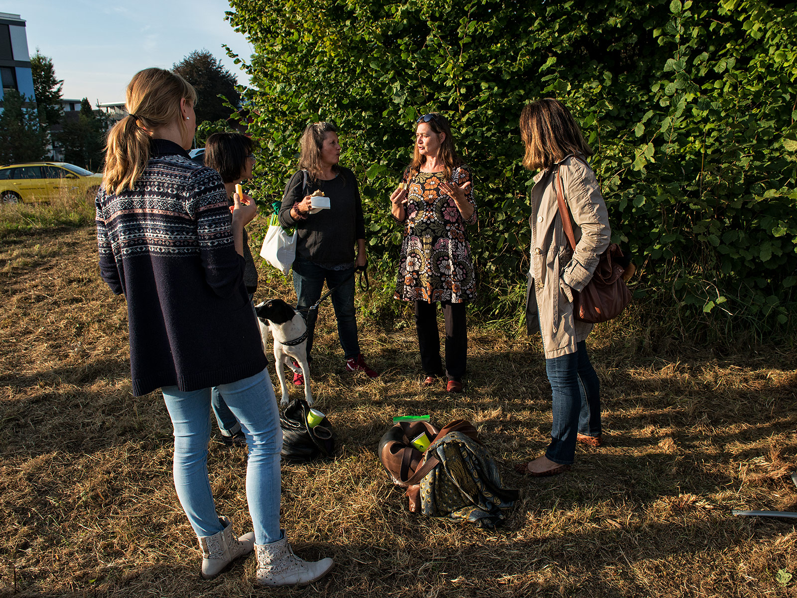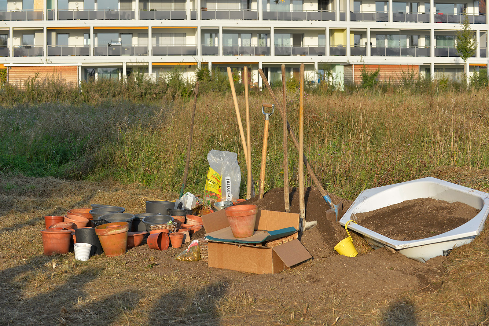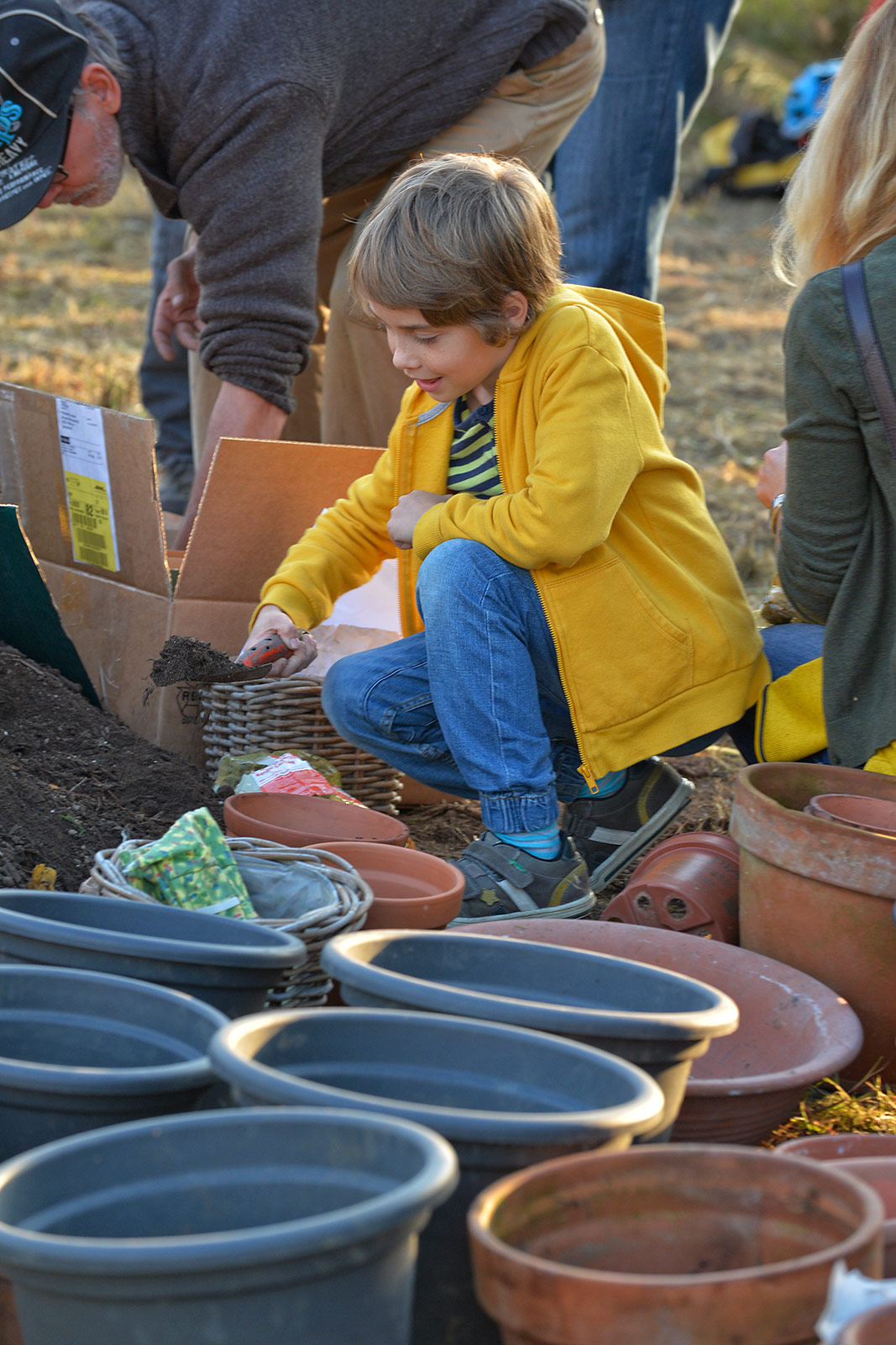 Eine bunte Gruppe von Anwohnern jeglichen Alters traf sich zum vergnügten Blumenzwiebeln pflanzen und einem Apéro. Der erste Schritt ist getan, auf das der Garten gedeihe!
